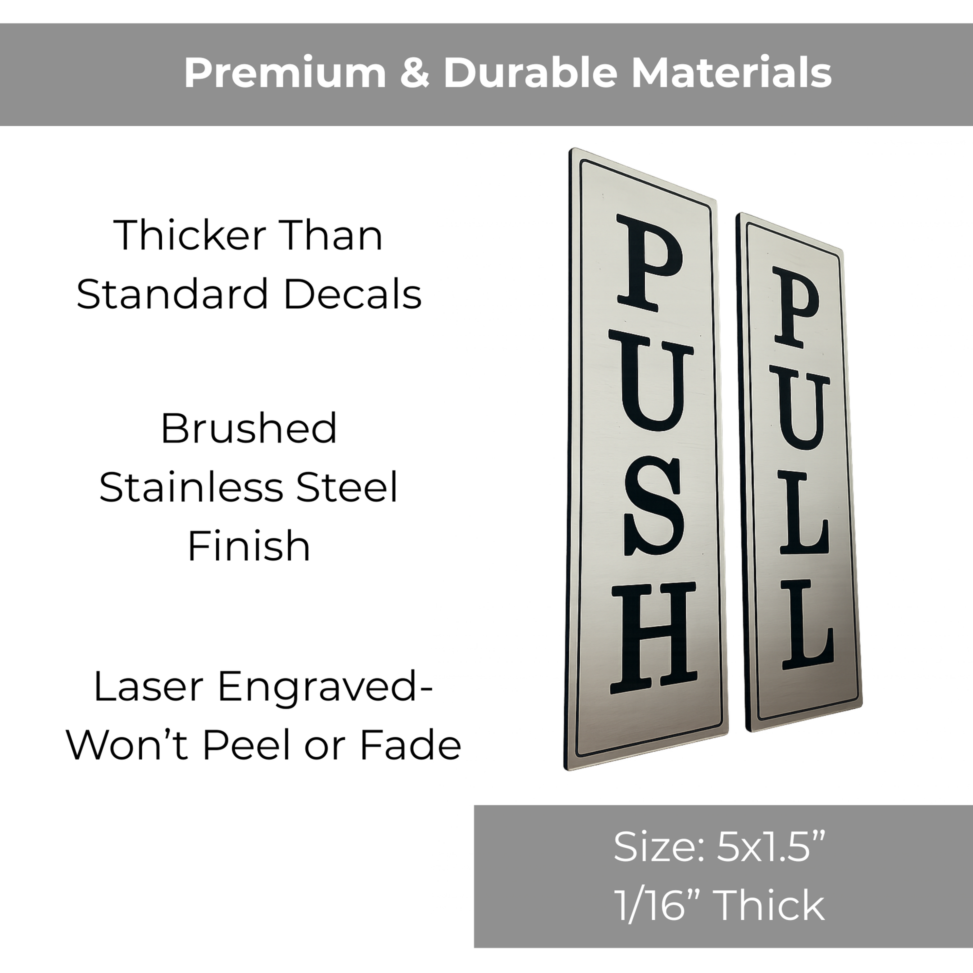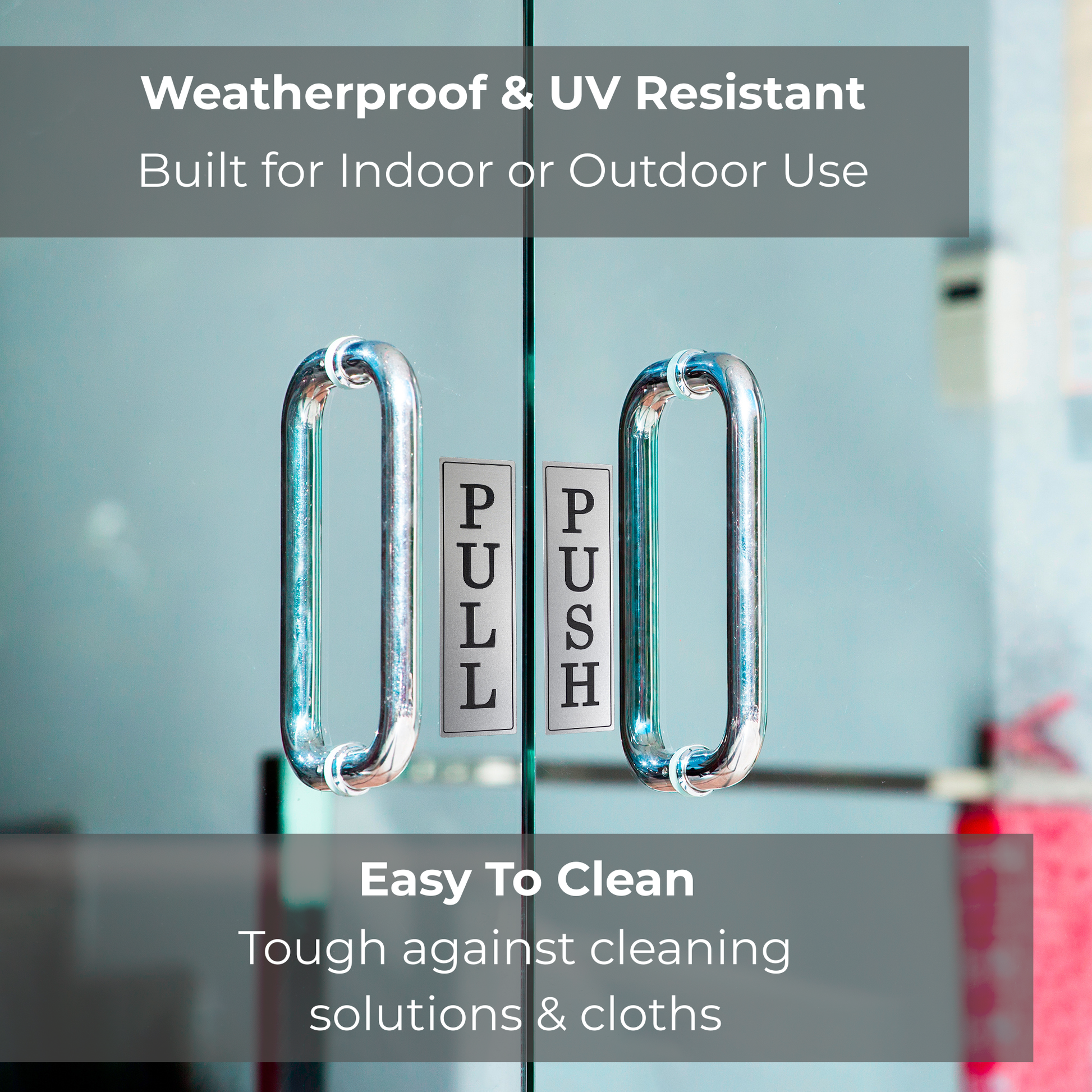 Push Pull Door Sign | Set of 2 Engraved Decal | Coffee Shop Entrance Business Sign | 3M Adhesive Easy to Install | Weatherproof UV Resistant